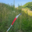 De lintjes markeren de natuurgraven die nu lastig te zien zijn. We maaien deze plekken eerst met de hand vrij, zodat de grote maaimachine er straks zorgvuldig omheen kan werken.